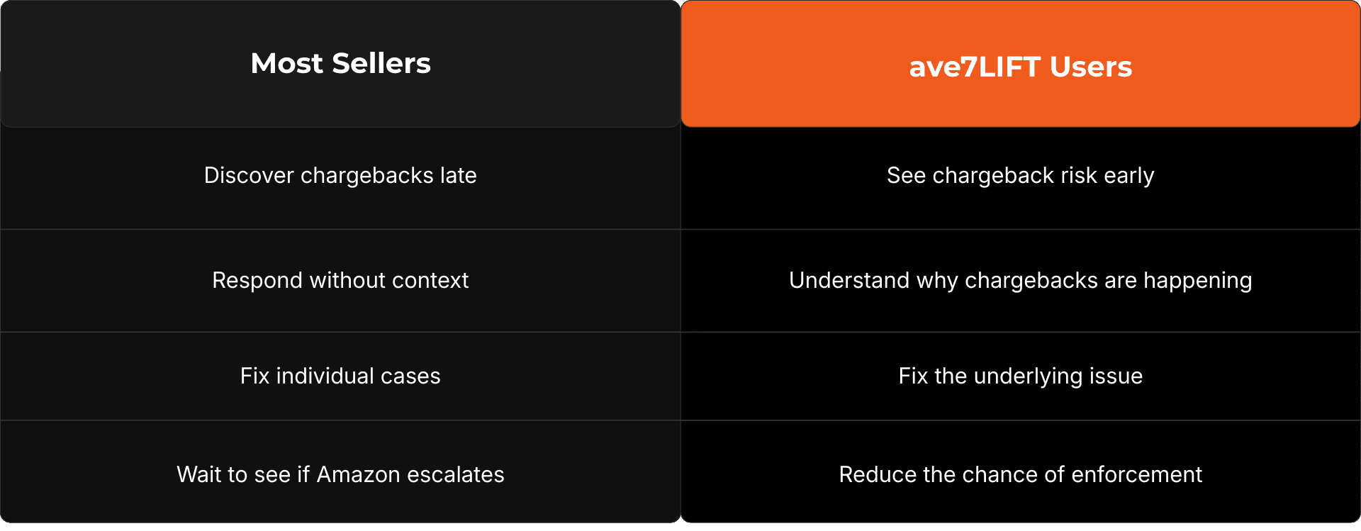 "Real feedback from brands and operators who used ave7Lift to uncover hidden issues, understand Amazon actions faster and eliminate hours of manual investigation."